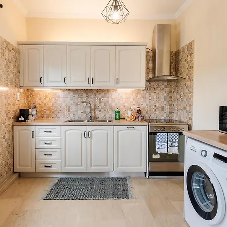 Un bollitore elettrico e un forno sono gli standard in una cucina completamente attrezzata. Per raggiungere i ristoranti 3Monkeys e la Vergina ci vuole una passeggiata di 20 minuti da quest'appartamento di 80 m^2. La fermata dell'autobus Hospital - Kontokali è a soli 10 minuti a piedi da quest'alloggio.